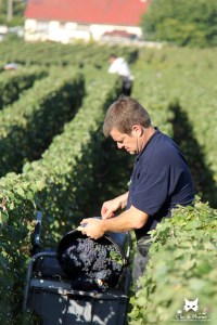 Remplissage des caisses à vendanges dans une de nos vignes.